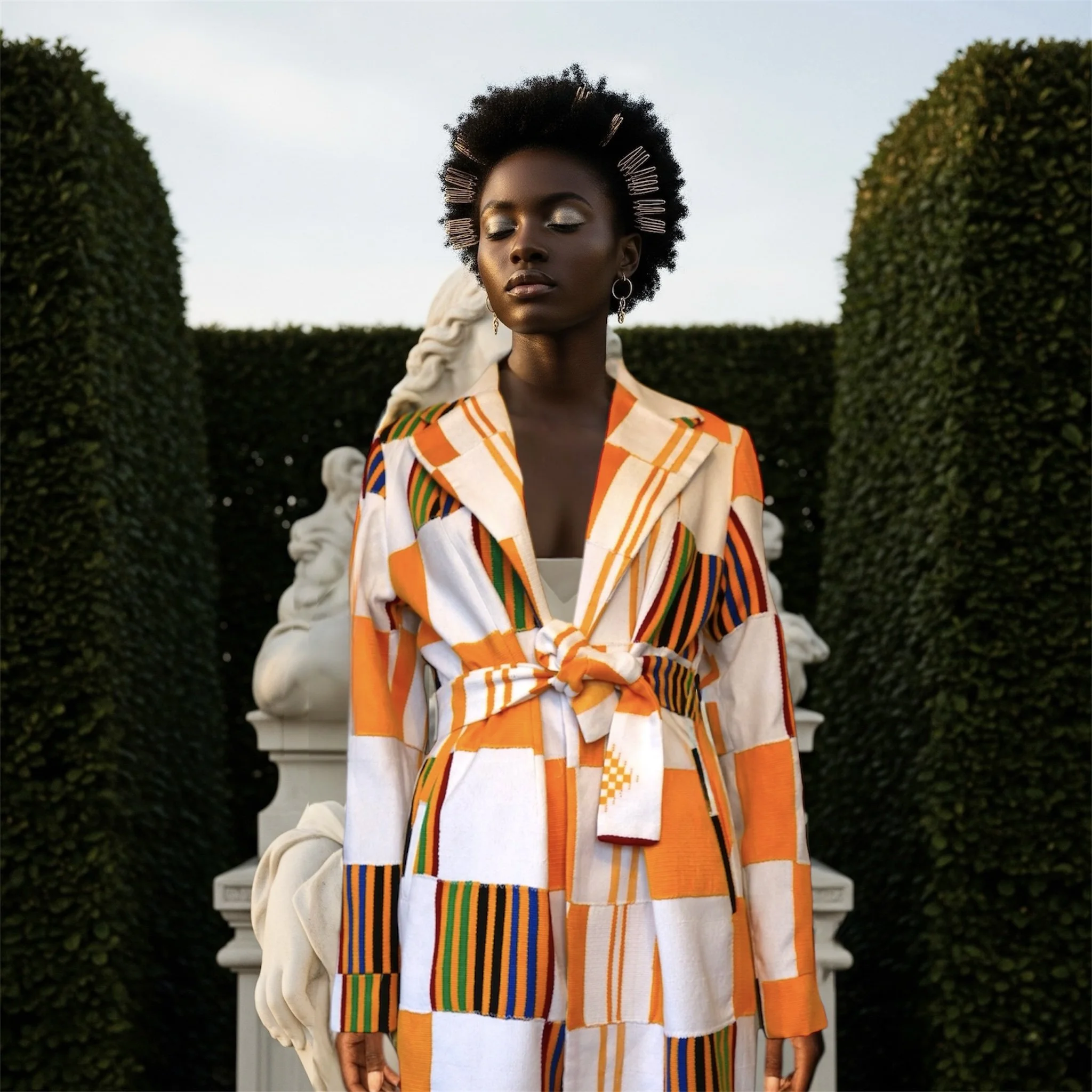 Our reimagined Kente collection honors traditional weaving techniques while embracing contemporary silhouettes, creating pieces that bridge ancestral wisdom with modern elegance.